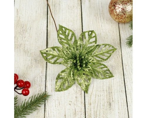Декоративный цветок прекрасно подходит для новогоднего украшения интерьера. Могут использоваться для декора жилых помещений, офисов и торговых точек. Изделие можно подвешивать к потолку, создавая великолепные композиции. Цветок покрыт блестящей крошкой, поэтому он так красиво переливается и создаёт волшебную праздничную атмосферу.