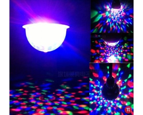 Классный подарок для себя и друзей! Светодиодная лампа Цветомузыка - прекрасно подойдет для светового оформления вечеринки, семейного праздника, детской комнаты, зон релаксации. Лампа проста в эксплуатации и не вредит зрению. Имеет встроенные цветные светодиоды и специальный вращающийся цоколь в виде полусферы. Во время вращения разноцветные лучи проектируются на потолок и стены, вследствие чего создается эффект цветомузыки для дискотеки. Лампа легко устанавливается в любой стандартный патрон, не требует подключения через провод в розетку. Корпус выполнен из пластика. Внутри лампы встроен мотор, приводящий в движение цветные огни. Света одной лампы достаточно для помещения до 30 квадратных метров. Лампа энергосберегающая, т.к потребляет на 80% меньше электроэнергии, чем обычная лампа накаливания.